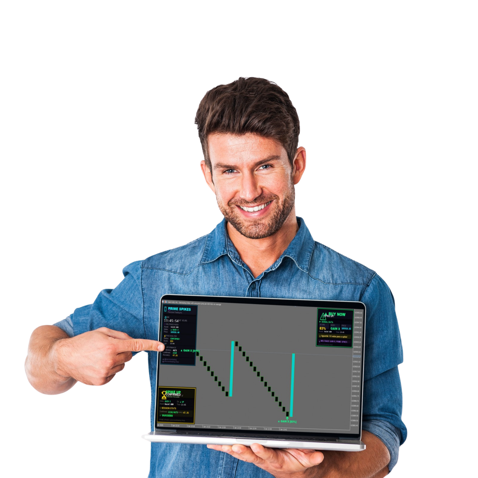 It works perfectly for manual traders who want to control execution while relying on a system that highlights high-probability spike moments.